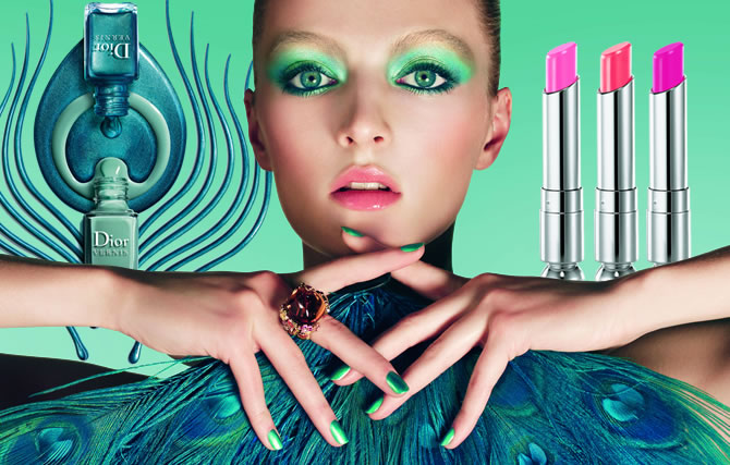 Do azure ao azul indigo, do verde-pavão ao rosa hibisco, olhos e unhas exibem tons exóticos de uma natureza exuberante. Sedutores e radiantemente frescos, os lábios surgem em tons pêssego, coral e rosa matizada.